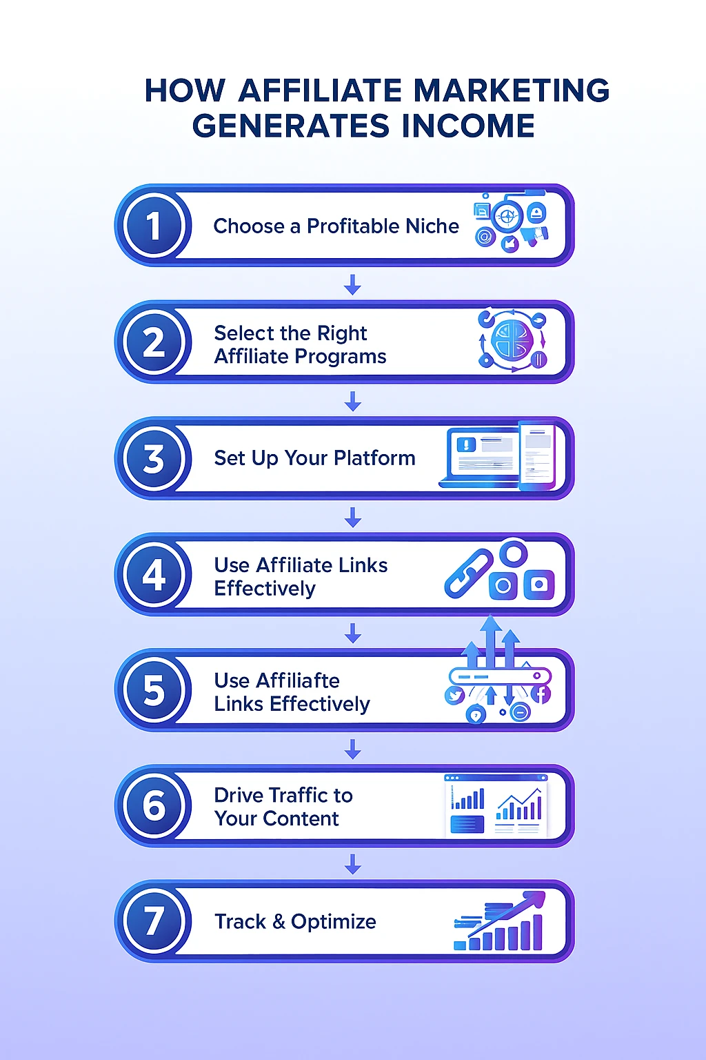Affiliate marketing turns your content into a source of steady online income. Here’s how the process works step by step: